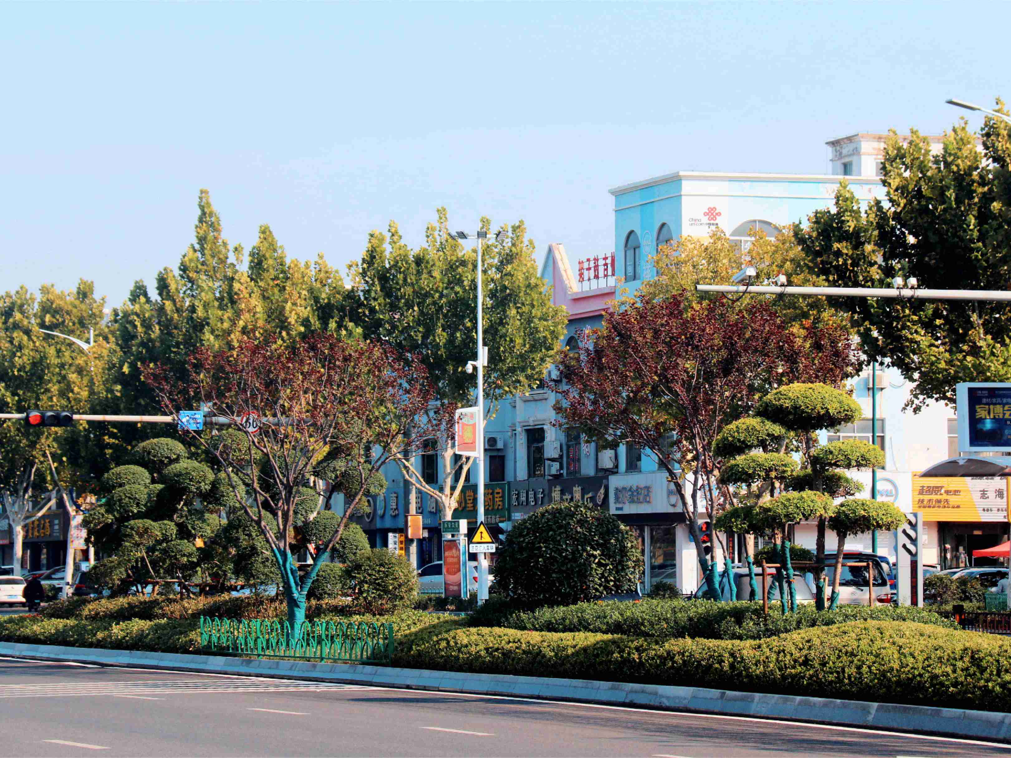該項目是京博逸林專業(yè)打造的市政道路綠化亮化工程,全長1500m,涉及排水管道清淤、蓋板更換、景觀綠化恢復等內(nèi)容。在項目推進建設過程中,京博逸林秉承助力博華苗木經(jīng)營,打造高品質(zhì)生態(tài)園林工程的責任,充分發(fā)揮博華苗圃優(yōu)勢,圍繞“活、賞、值、移”的發(fā)展定位,應用自有苗木到項目場景中,栽植造型景松、對節(jié)白蠟、造型龍柏、紫葉稠李等特色植物,打造不同層次景觀空間,在縣域交通關鍵節(jié)點發(fā)揮應有的觀賞價值,以“高顏值”向國慶獻禮。